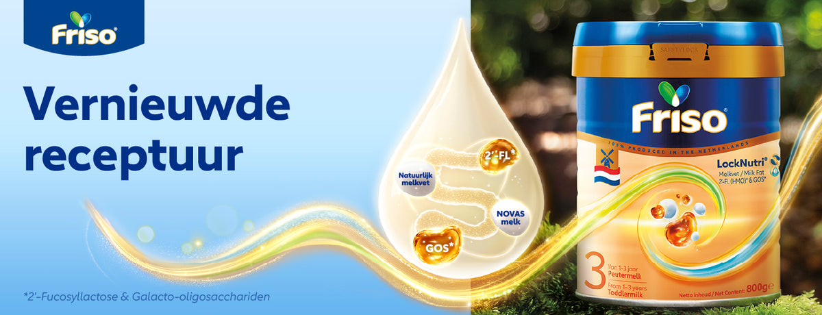 Our real Dutch follow-on milk for children from 10 months. Friso® 3 contains Vitamin D, GOS & DHA, as legally prescribed for all follow-on milks.